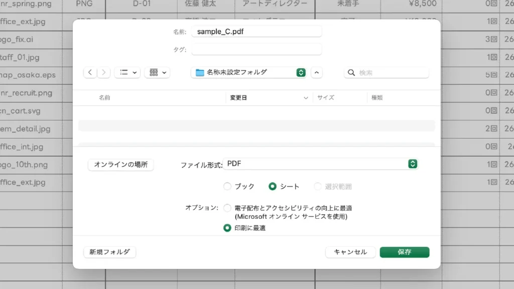 用途に合わせて、そのままエクセルで送るか、PDFにするかを選択します。