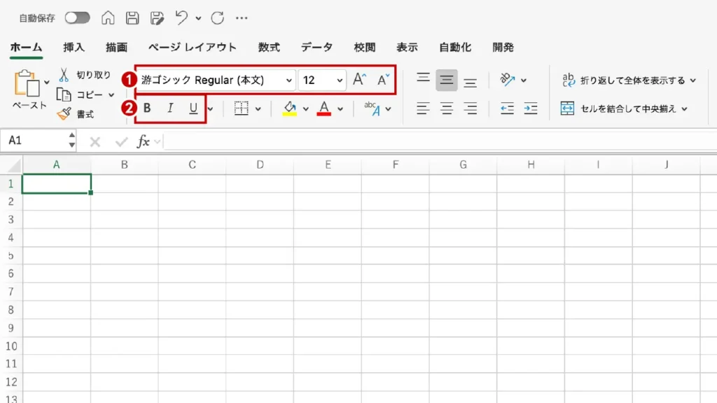 - ❶ フォントとサイズを変更する:状況に応じて適宜設定をしましょう。