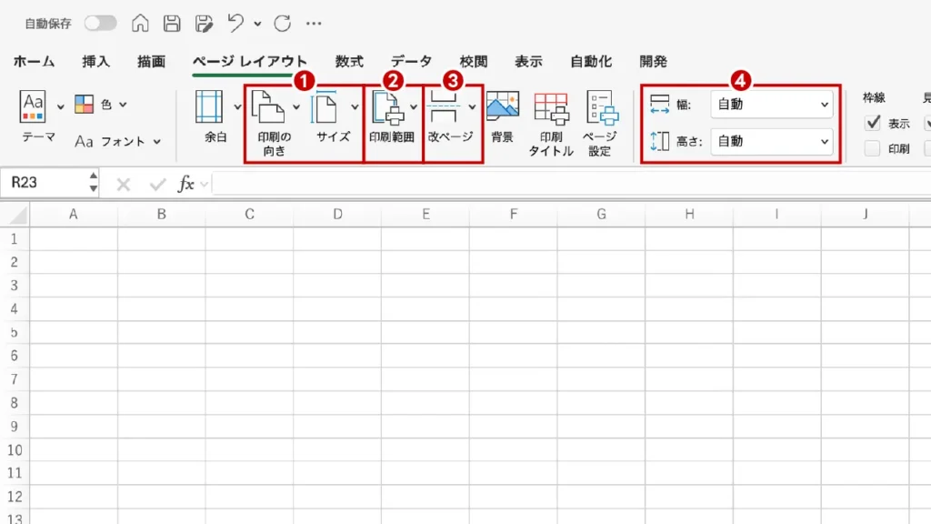 - ❷ 印刷範囲の設定:印刷したいエリアをマウスで選択し、[印刷範囲]>[印刷範囲の設定]をクリックします。これで、選択したエリアだけが印刷(またはPDF出力)の対象となります。余計な作業メモなどを出力させないための必須マナーです。