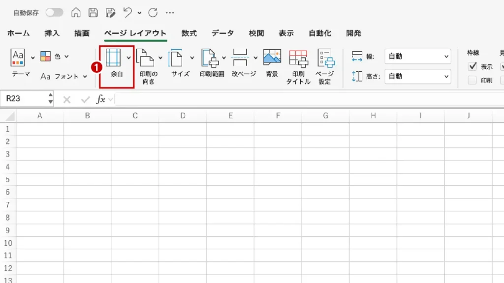 - ❶ 余白:印刷した際、紙の端にできる「空き」を設定します。バインダーで綴じるスペースを確保したり、あえて余白を広く取って情報の見やすさを調整したりするために使用します。