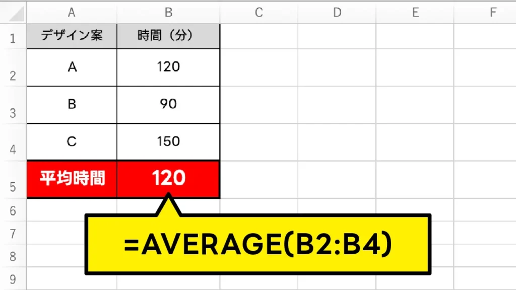 =AVERAGE(セル範囲)