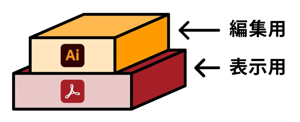 実は、今のIllustratorファイル(.ai)の正体は、「PDF」という共通の箱(コンテナ)です。 イメージとしては、一つのファイルの中に2つの部屋がある「二階建て構造」を想像してみてください。