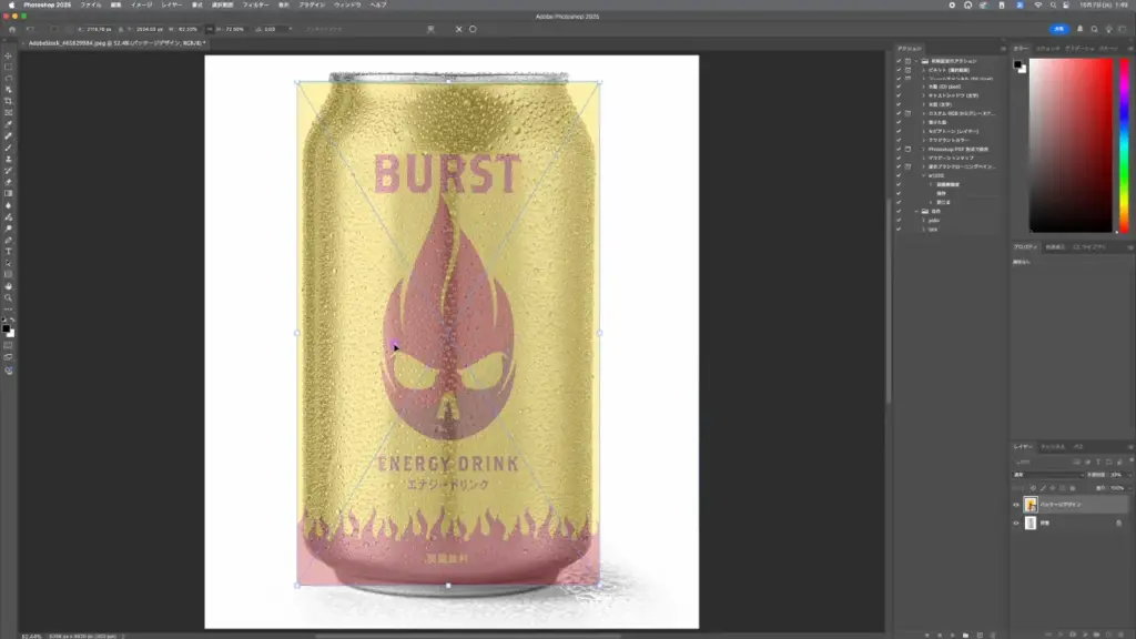 今回は、「水滴のついたリアルな缶にパッケージデザインを合成する」方法を、Adobe Photoshopを使って徹底解説していきます。このテクニックをマスターすれば、平面で味気なかったデザインがまるで実物のように見え、クライアントへのプレゼンやポートフォリオの質がグッと上がりますよ!
