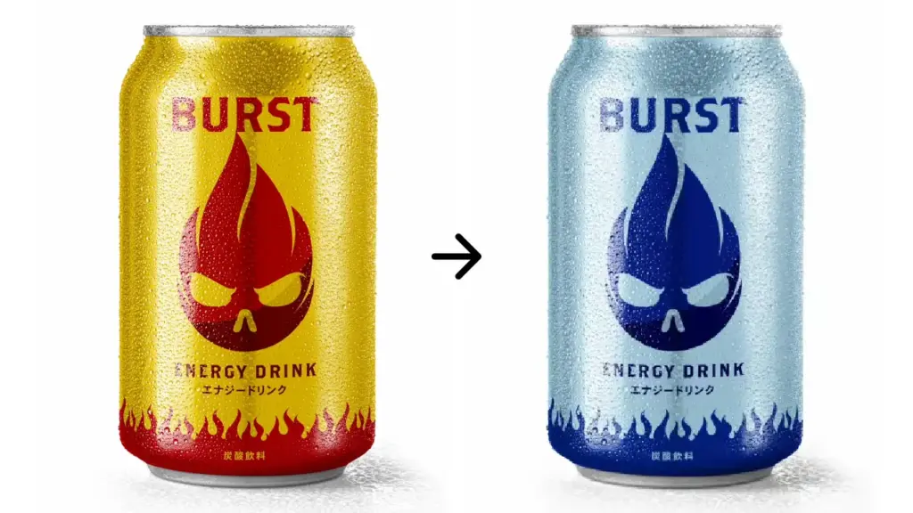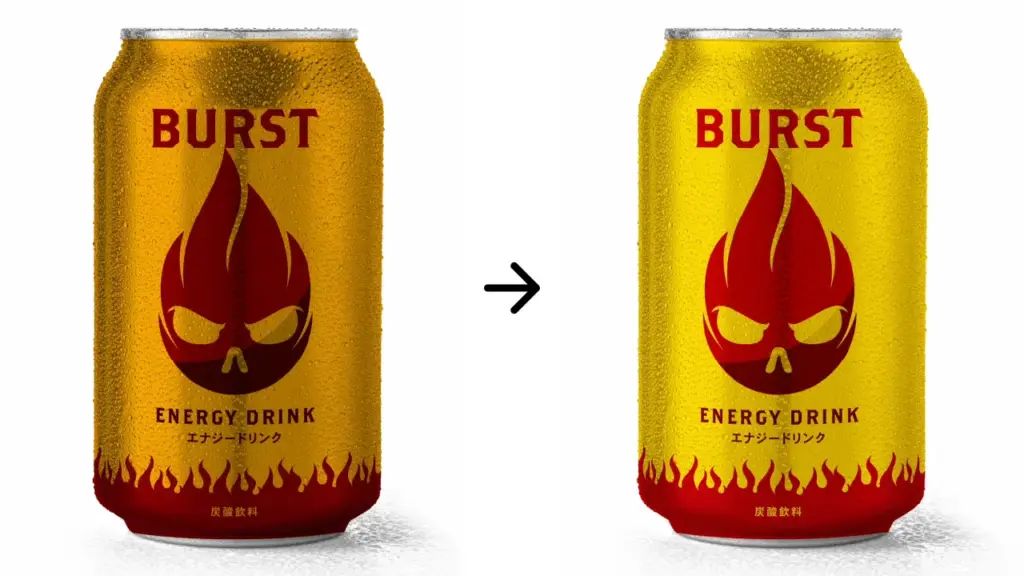 水滴のリアルさや金属の質感はそのままに、パッケージデザインの色だけを乗せるようにブレンドしていきます。