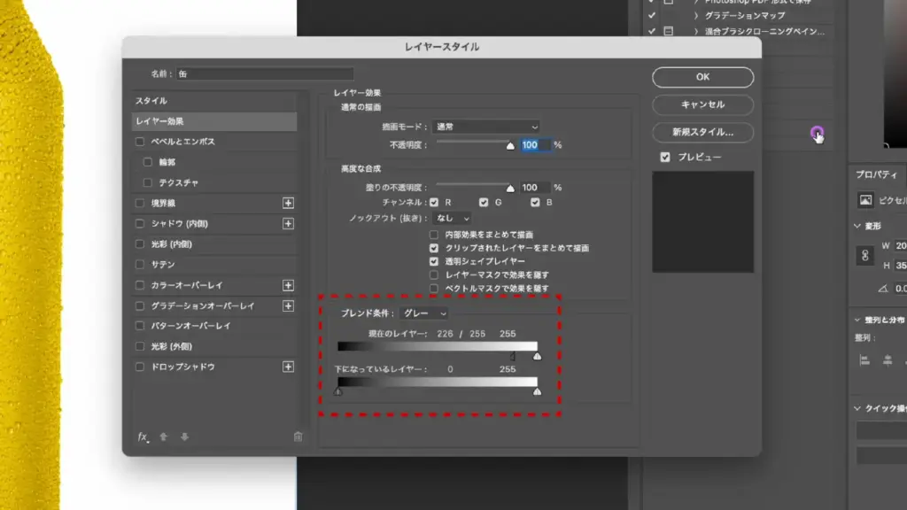 「缶」レイヤーをダブルクリックして、レイヤースタイルパネルを表示させます。