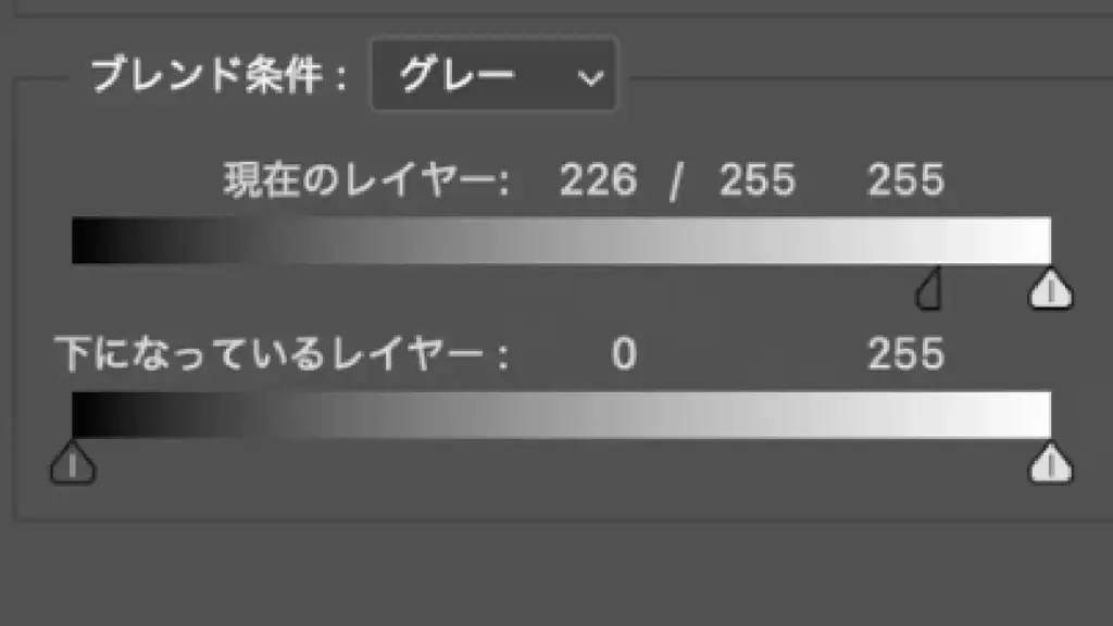 スライダーを移動して、水滴のハイライトがほどよく残る位置でOption(Alt)キーを押しながらスライダーをドラッグし、2つに分割します。これにより、ブレンドが滑らかになり、水滴の粒が自然に浮かび上がります。