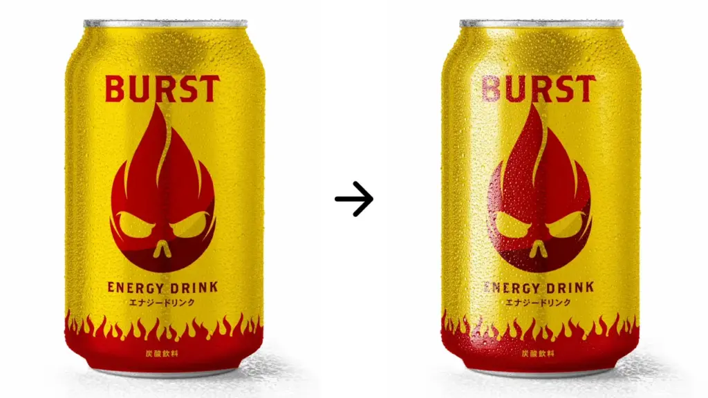元の缶画像の水滴やハイライトのテクスチャをデザインに馴染ませます。この作業が、よりリアルに見せるための最重要ポイントです。