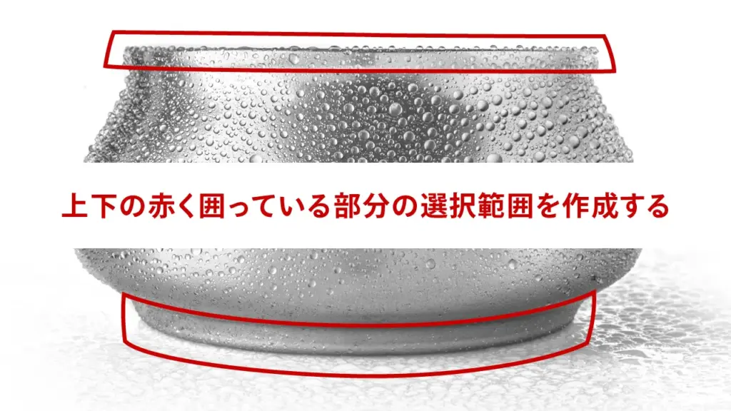 ペンツールで缶の上下のデザインを反映させたくない部分の選択範囲をパスで作成します。